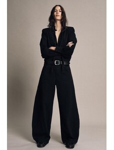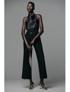 ZARA ZW COLLECTION KALHOTY WIDE LEG S PUKY A VLNOU LIMITOVANÁ EDICE Černá XS