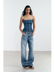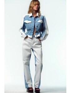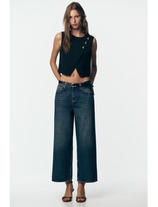 ZARA DŽÍNY TRF CROPPED S POSUNUTÝMI ŠVY A NÍZKÝM PASEM Modrá 32