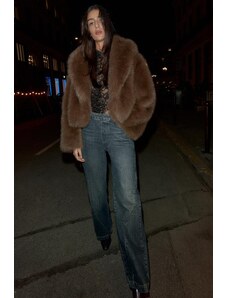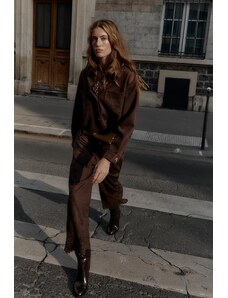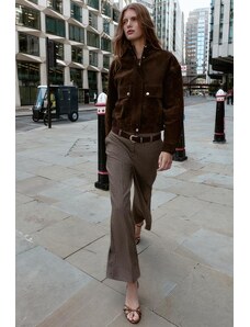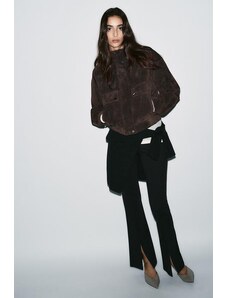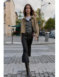 ZARA KALHOTY CULOTTES Z IMITACE SEMIŠE S DĚROVANÝM LEMEM Hnědá XS