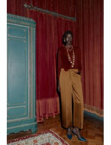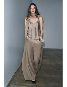 ZARA SATÉNOVÉ KALHOTY SE ŠIROKÝMI NOHAVICEMI Karamel XS