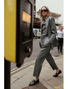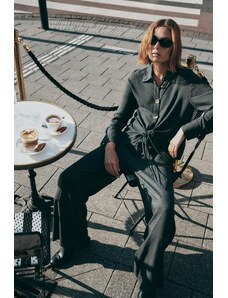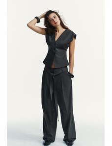 ZARA KALHOTY S TENKÝM PROUŽKEM A PÁSKEM Uhlově šedá XS