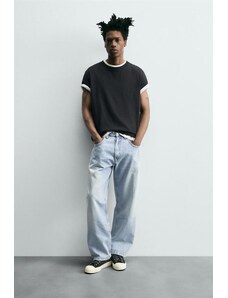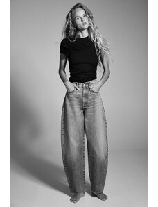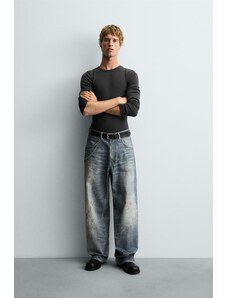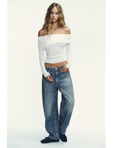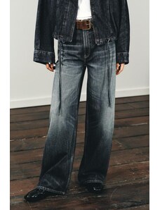 ZARA DŽÍNY TRF BAGGY BARREL SE STŘEDNĚ VYSOKÝM PASEM Modrá Modrá 32