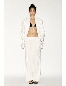 ZARA ZW COLLECTION BAVLNĚNÉ KALHOTY SE ZÁHYBY Bílá 32