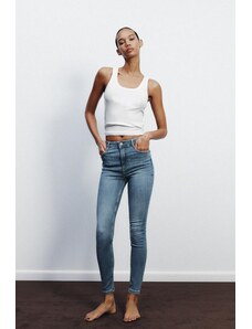 ZARA JEANS TRF SKINNY S VYSOKÝM PASEM Modrá Modrá 32