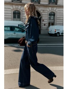 ZARA DŽÍNY ZW COLLECTION WIDE LEG S PLISOVÁNÍM PO STRANÁCH Modrá 32