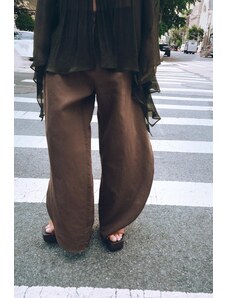 ZARA ZW COLLECTION SPLÝVAVÉ KALHOTY SE ZÁŠEVKY Hnědá XS