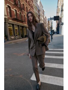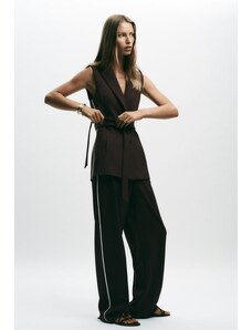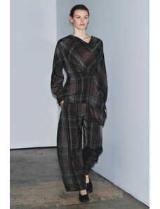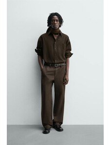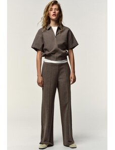 ZARA ZW COLLECTION MANŠESTROVÉ KALHOTY WIDE LEG Hnědá / Tmavošedá XS