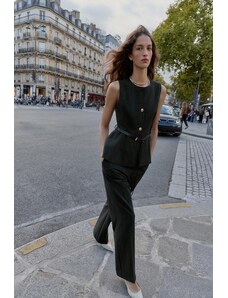 ZARA KALHOTY SE SKLADY A TENKÝM PROUŽKEM Černá Černá 36