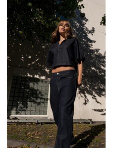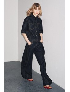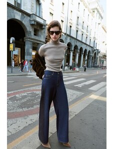 ZARA DŽÍNY TRF EXTRA WIDE LEG S VYSOKÝM PASEM Modrá Navy 32