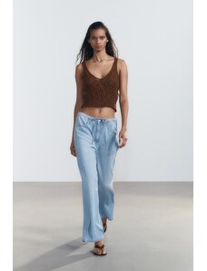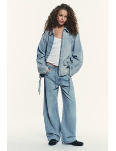 ZARA SPLÝVAVÉ DŽÍNOVÉ KALHOTY TRF SE ŠŇŮRKOU Světle modrá 32