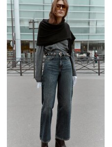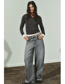 ZARA DŽÍNY TRF MID-RISE S PŘEHÝBACÍM PASEM Šedá 32