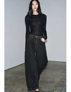 ZARA JEANS ZW COLLECTION BARREL SE STŘEDNĚ VYSOKÝM PASEM Černá 32