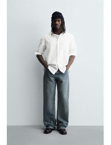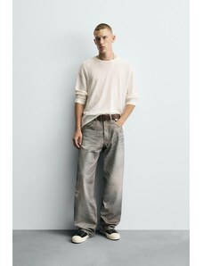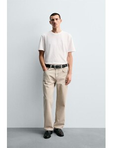 ZARA DŽÍNY STRAIGHT FIT S OPRANÝM VZOREM Přírodní 38