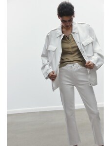 ZARA DŽÍNY TRF CROPPED FLARE S VYSOKÝM PASEM Bílá Bílá 32