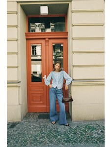 ZARA DŽÍNY ZW COLLECTION WIDE LEG S VYSOKÝM PASEM Modrá 32