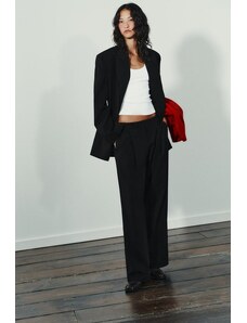 ZARA ROVNÉ KALHOTY Z VLNĚNÉ SMĚSI 50TH ANNIVERSARY Černá XS