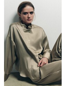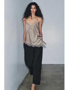 ZARA SATÉNOVÉ KALHOTY S VYSOKÝM PASEM Hnědá / Přírodní Hnědá / Přírodní XS