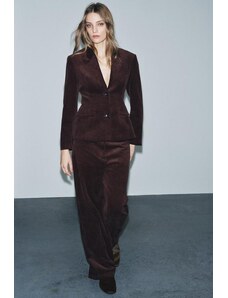 ZARA ZW COLLECTION ROZŠÍŘENÉ SAMETOVÉ KALHOTY Modrá XS