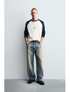 ZARA DŽÍNY RELAXED FIT S VÝŠIVKOU NFL MIAMI DOLPHINS střední modrá 36