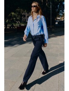 ZARA KALHOTY ROVNÉHO STŘIHU ZE 100% VLNY Modrá Navy 36