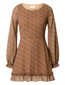 Miss Selfridge Šaty 'FRIL' béžová / hnědá / tmavě hnědá