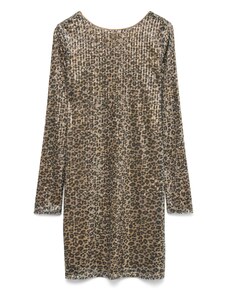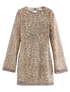 Brave Soul long sleeve mesh mini dress in leopard print-Multi