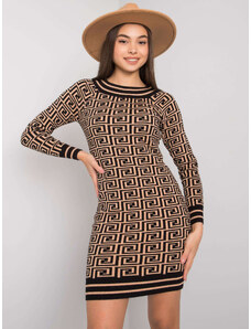 BASIC Hnědé dámské vzorované přiléhavé šaty -camel Vzory