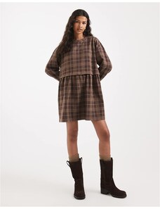 Miss Selfridge check long sleeve layered smock dress-Multi