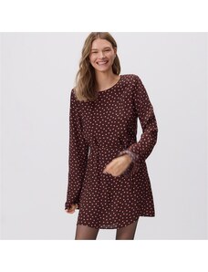 Daisy Street shirred smock mini dress in 70's brown ditsy floral-Multi