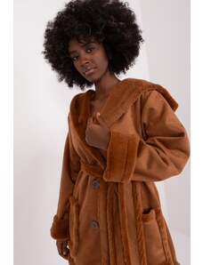 MladaModa Krátký kožich s knoflíčky a páskem model 45996 hnědý