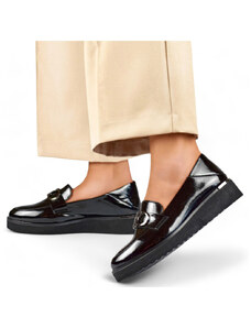 Zazoo 2880 Dámské Lakuované Mokasíny S Ozdobou Černé